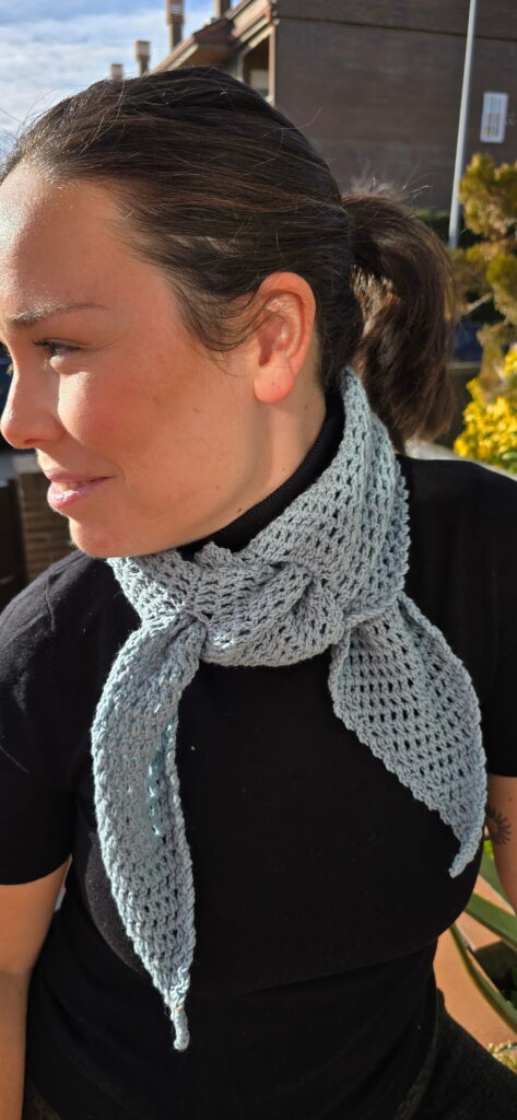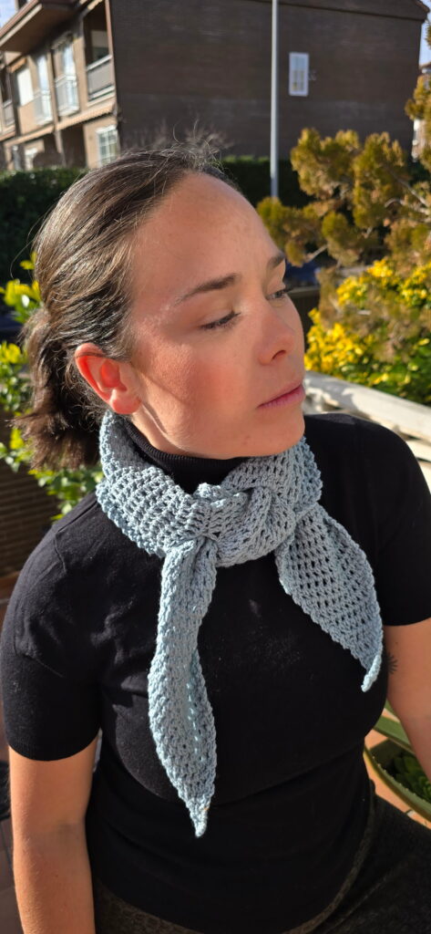 La Yolix Scarf es una bufanda ligera, elegante y muy especial. A simple vista parece sencilla… pero esconde un truquito que la transforma por completo: