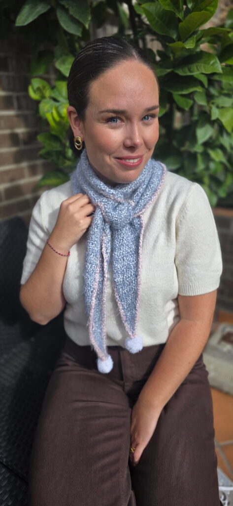 La Sophie Scarf es un proyecto que invita a repetir puntos con calma, a disfrutar de la regularidad y del gesto constante. Es una bufanda versátil, envolvente, perfecta para esos momentos en los que tejer se convierte casi en meditación.